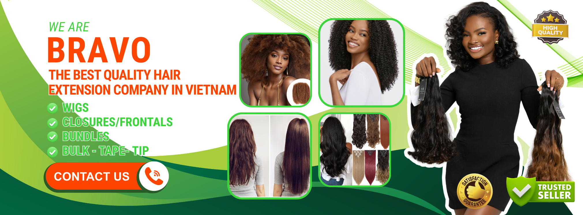 Bravo Hair Vietnam(Sub Brand of Green Hair Factory) is a prestigious and leading brand in Vietnam’s wig and hair extension industry. With years of experience, Bravo Hair is dedicated to delivering high-quality wigs, closures, frontals, and bundles that enhance natural beauty and boost customer confidence. The image below reflects our unwavering commitment to premium quality and professional service.